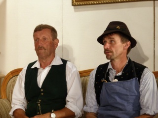 In Briefen wird dem "Zipfelbauern"(l.) und dem "Lenz" jeweils der Besuch eines unehelichen Sohnes angekündigt, für den sie 18 Jahre lang Alimente gezahlt haben. Da hilft nur noch Schnaps!